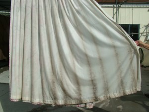 Dry cleaning doesn’t remove the stains nor the mildew. At Curtain Clean we use a gentle hand washing process and natural drying. No solvents are used in the process either.
